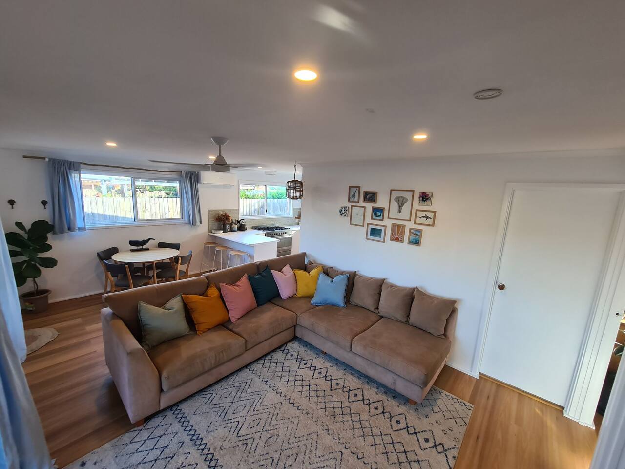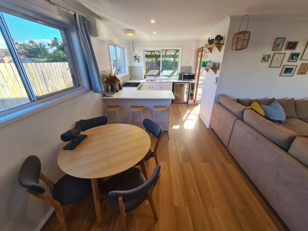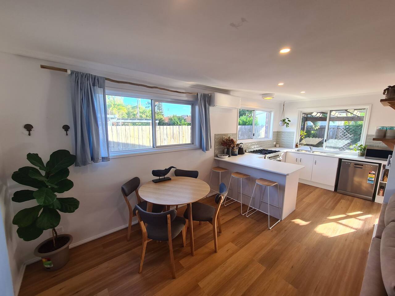 Relax by the beach in this cosy surf shack style townhouse. Within walking distance to the beach, shops, cafes and Mount Coolum. Recently renovated, the lovely space comes with everything you might need on your coastal holiday including a full sized kitchen with dishwasher, washer/dryer, two dining areas plus much more!